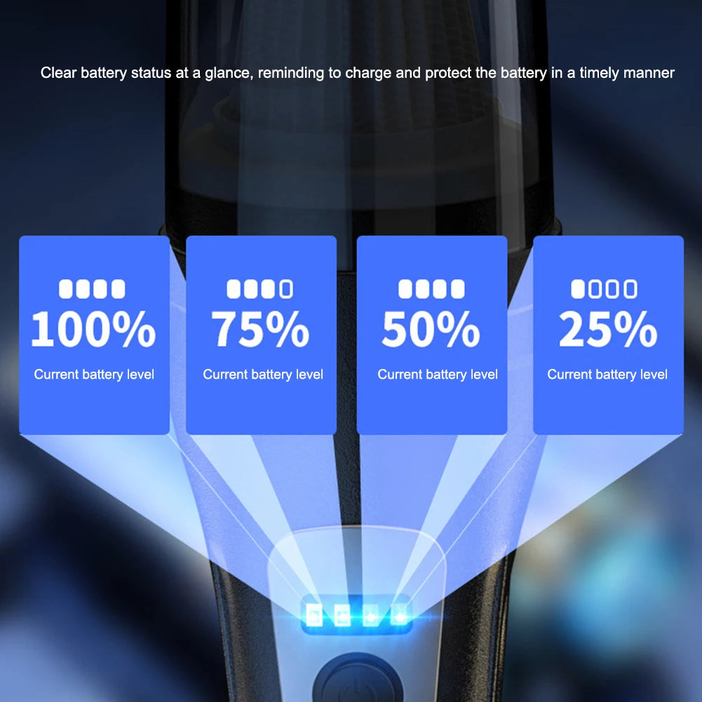 2. Long Battery Life and USB Charging: The car cordless vacuum cleaner is equipped with a high-capacity built-in battery that provides extended runtime. The USB charging cable allows you to charge it in any place with a USB port, making it convenient for charging in your car or anywhere on the go.