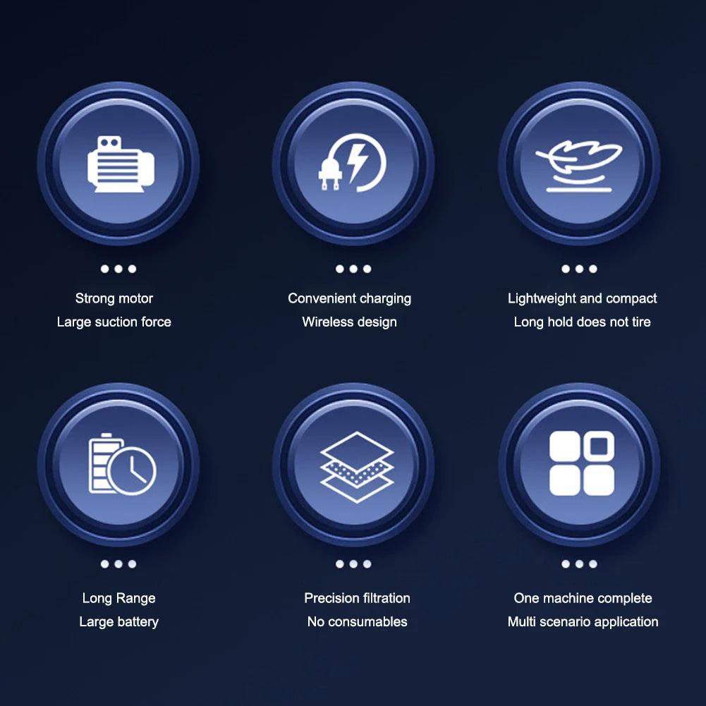 1. Powerful Motor and Lightweight Design: This car vacuum cleaner features a powerful motor that delivers impressive suction while maintaining a lightweight design. It effortlessly sucks up dust and stubborn pet hair, making it perfect for keeping your car clean. The cordless design ensures convenient maneuverability, allowing even children to easily grip and clean with it.