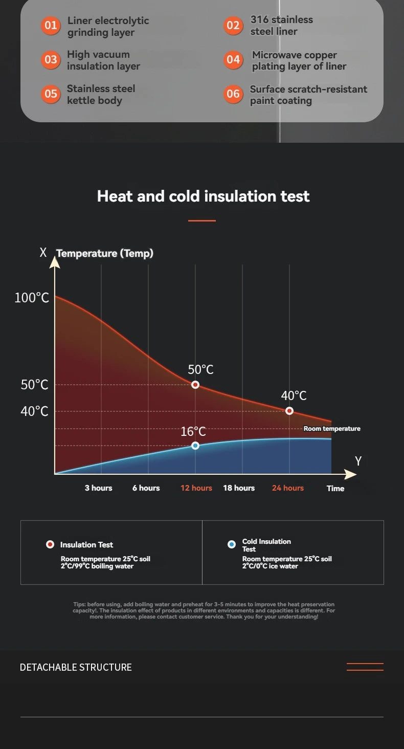 Thermal Insulation Performance: 12-24 hours