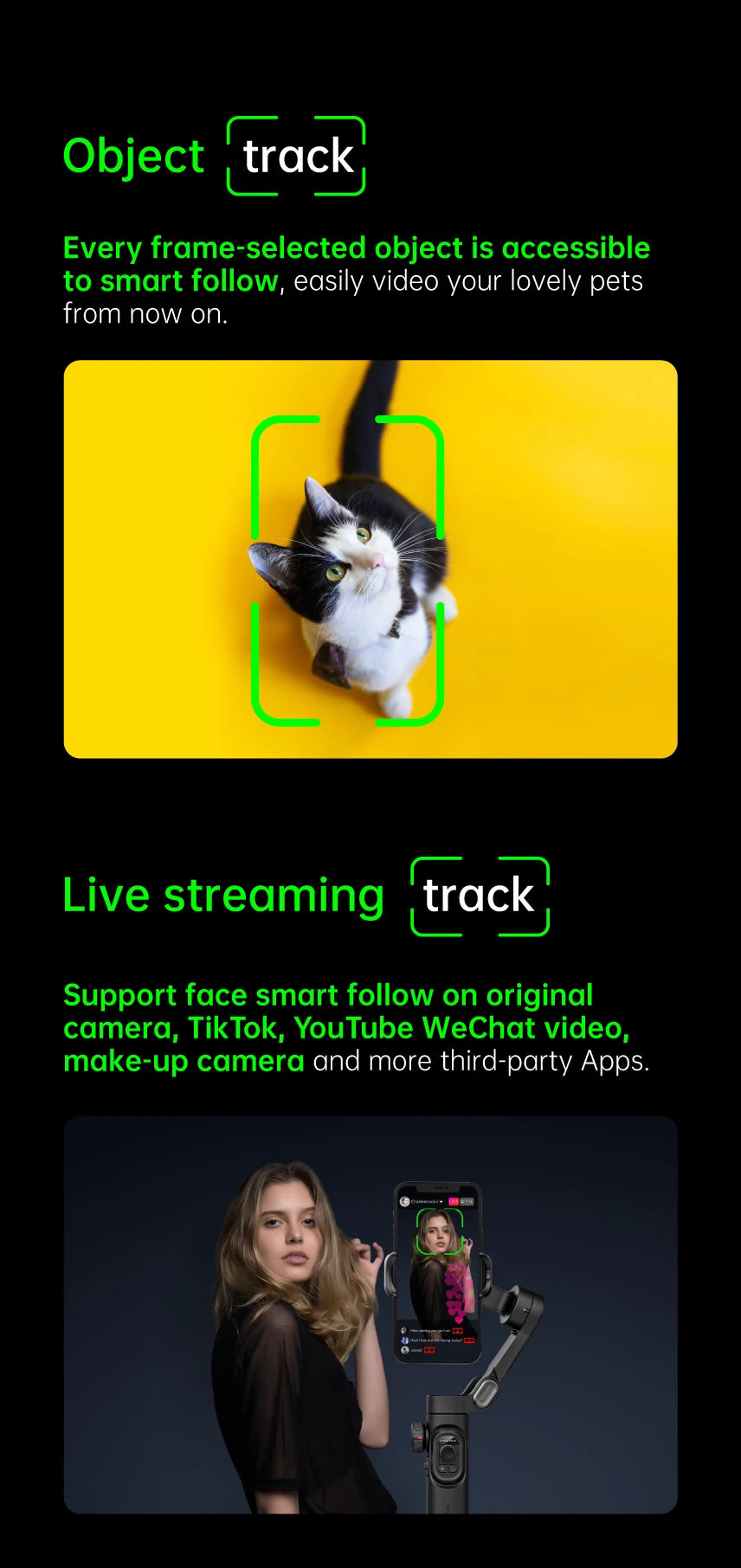 Equipped with smartxe technology, this gimbal can track AI faces, making it an ideal tool for live streaming and video conferencing.