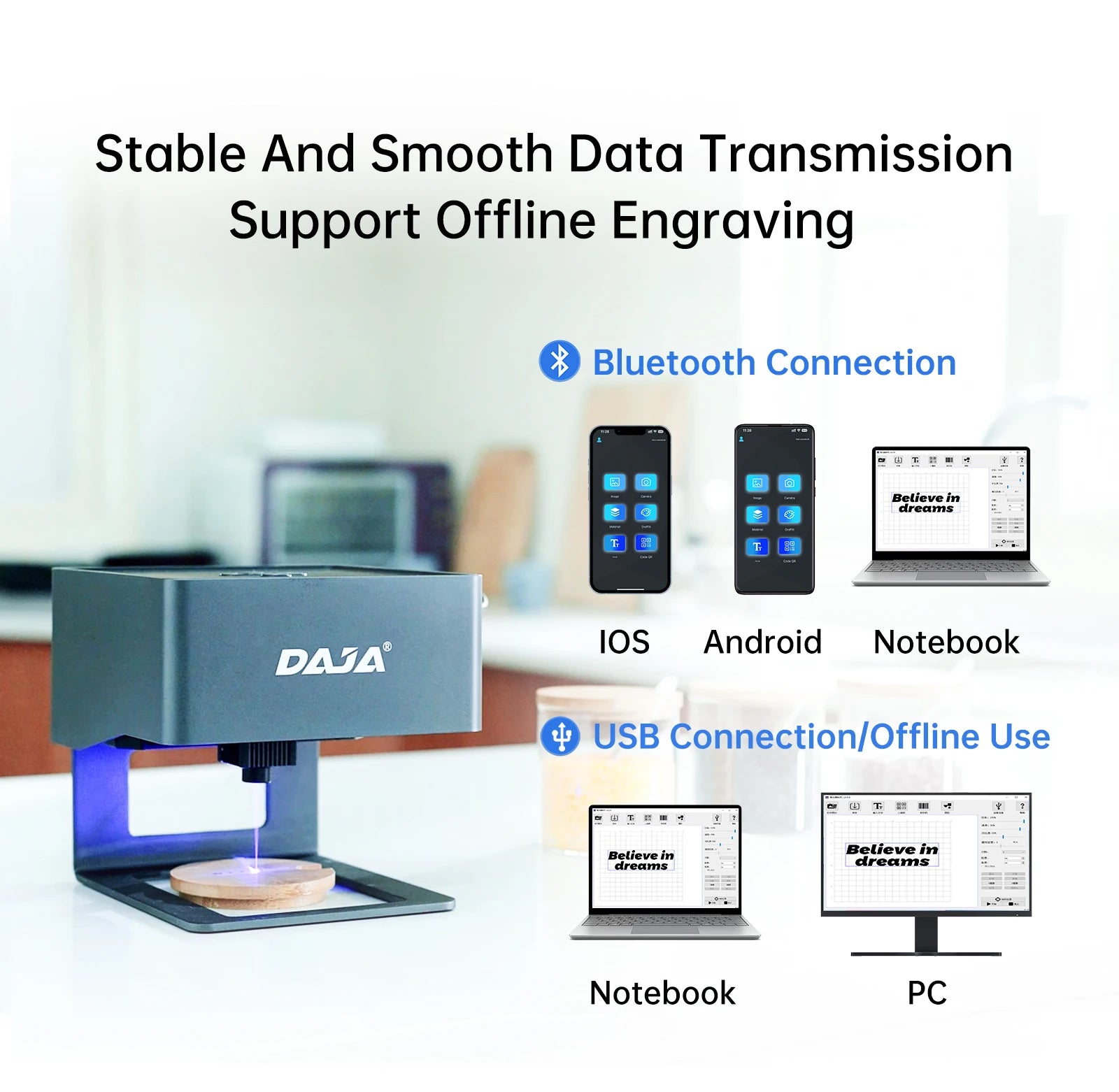 ✨Suitable for engraving a variety of materials: The DJ6 model can engrave: wood, paper, plastic, leather, bamboo, kraft paper, painted metal, and more! Can cut 0.2mm paper, wood, leather.