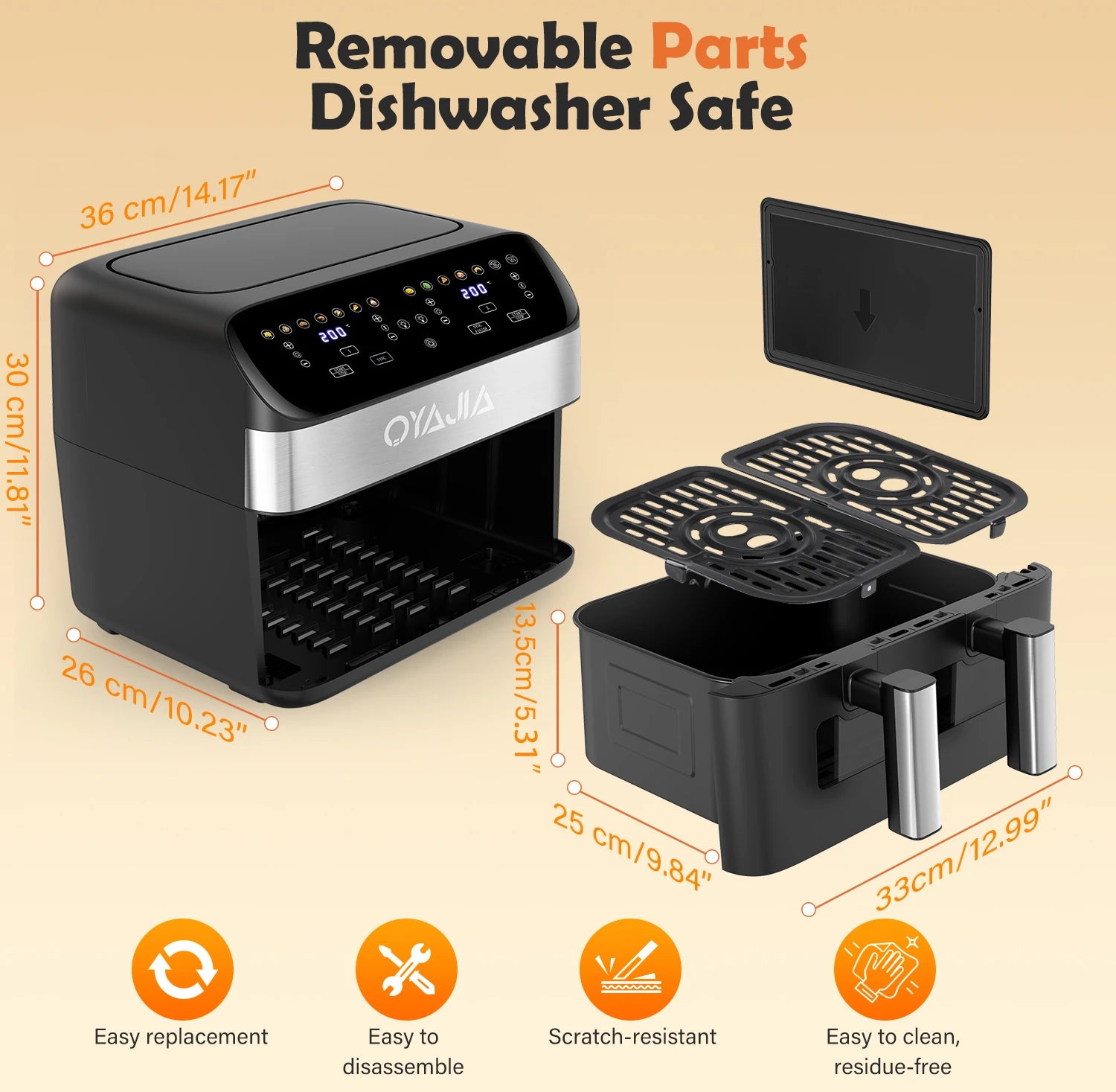 OYAJIA 10L Touch Screen Dual Basket Air Fryer with Viewable Window, 60 Min Timer, 80°C-200°C, 8 Preset Cooking Modes