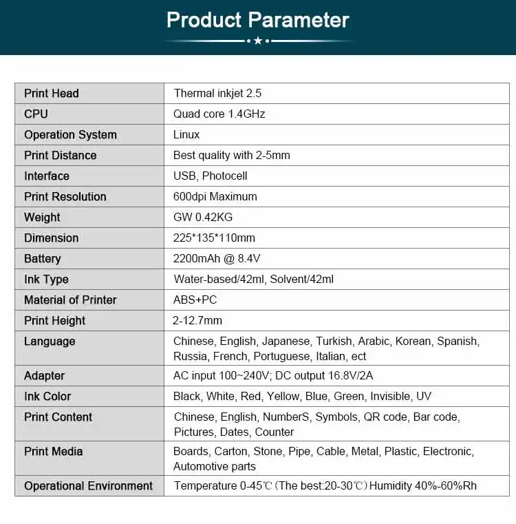 16,Print Content:Chinese,English, Numbers,Symbols, QR code, Bar code,Pictures, Dates,Counter