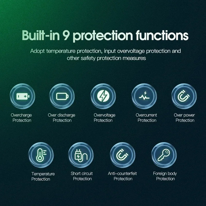 * Supports undervoltage, overvoltage, overcurrent, short circuit, bias protection and metal foreign body detection, overtemperature (about 40℃C).