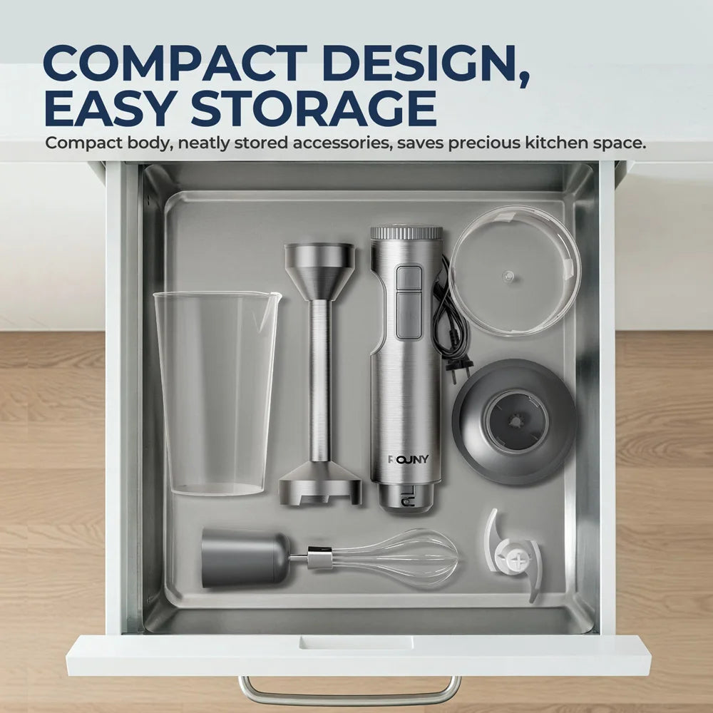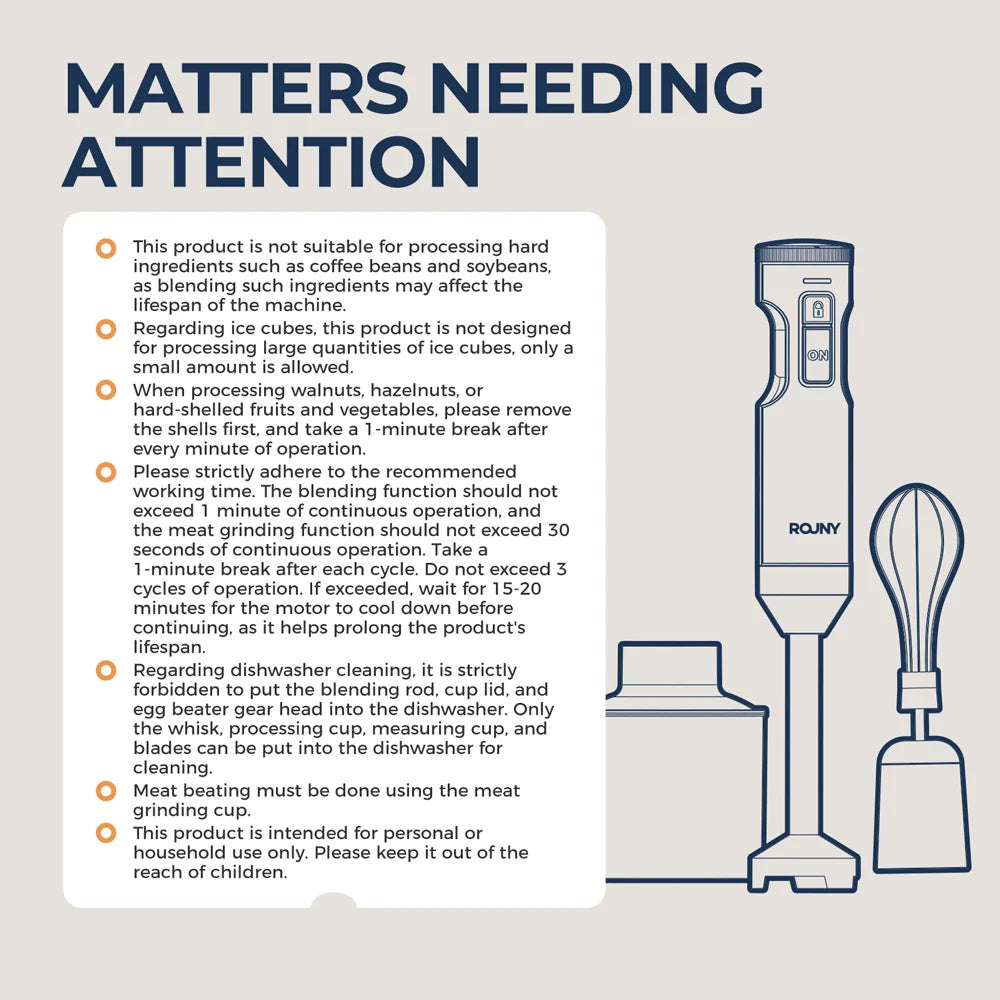 ROUNY 4-in-1 Hand Immersion Blender 1000W Powerful, Stainless Steel Stick Food Mixer,700ml Mixing Beaker,500ml Processor, Whisk