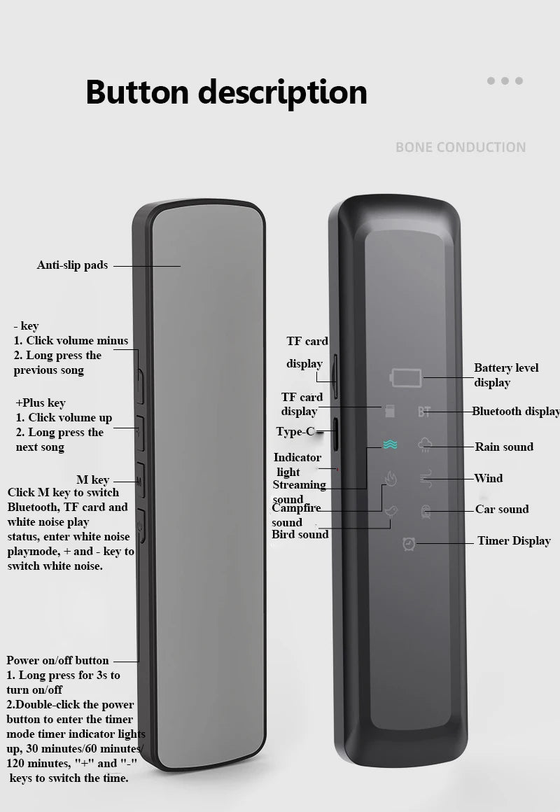 Under Pillow Bone Conduction Bluetooth Speaker White Noise Sleep Aid Soundbar with LED Display Timed Shutdown TF Card Music Play