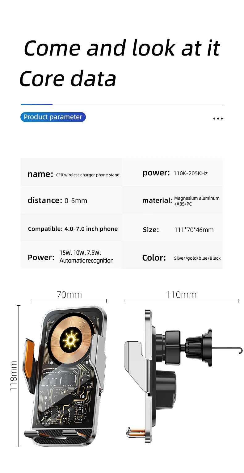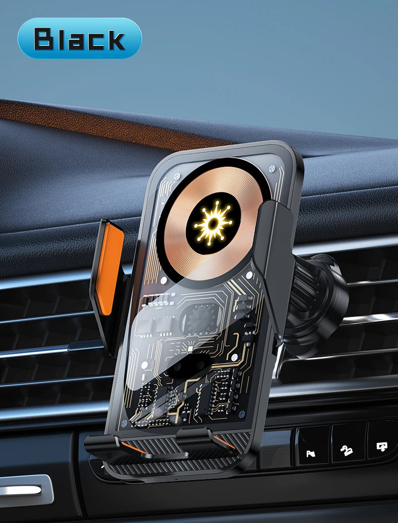 This car wireless charging holder is designed to be universally compatible, fitting most vehicles with air outlets.