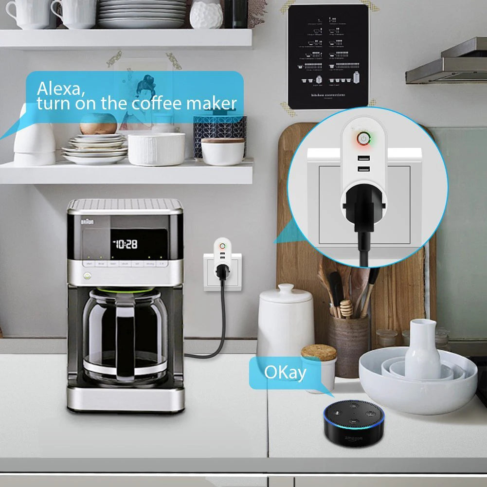 WiFi Smart Power Plug Adapter Electrical Outlet EU US AU UK GE Socket USB Time Remote Control by Smartlife App Alexa Google Home